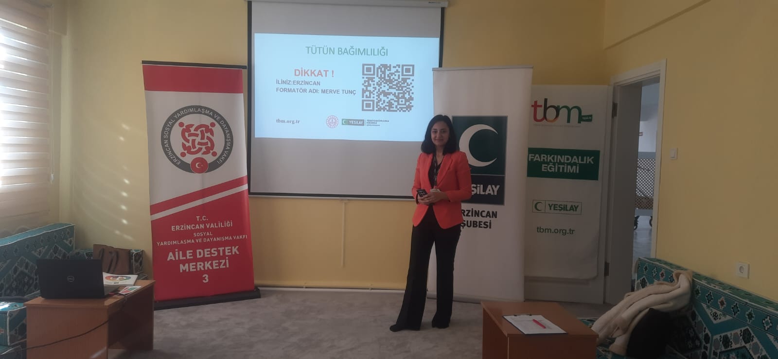 Akyazı, Çukurkuyu ve Yunus Emre Aile Destek Merkezlerinde düzenlenen eğitimlerde Formatör Merve Tunç tarafından tütün bağımlılığının etkileri, zararları ve korunma yolları ele alındı. Ardından Erzincan Yeşilay Danışmanlık Merkezi (YEDAM) Sosyal Hizmet Uzmanı Hande Hanım, merkezde yürütülen danışmanlık hizmetleri hakkında bilgilendirme yaptı.
