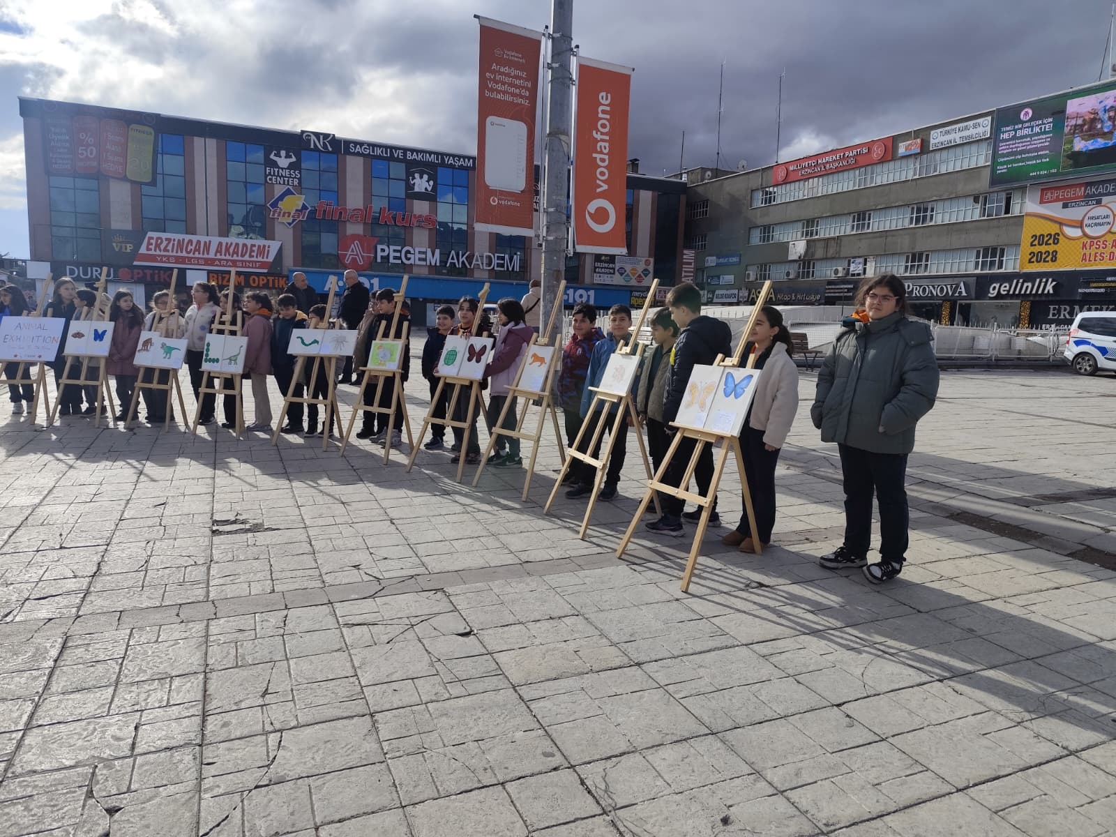 Erzincan Fidem Koleji 4. sınıf öğrencileri, İngilizce dersinde öğrendikleri hayvanlar ve renkler konusunu tuvallere aktararak Dörtyol Meydanı’nda sergiledi.