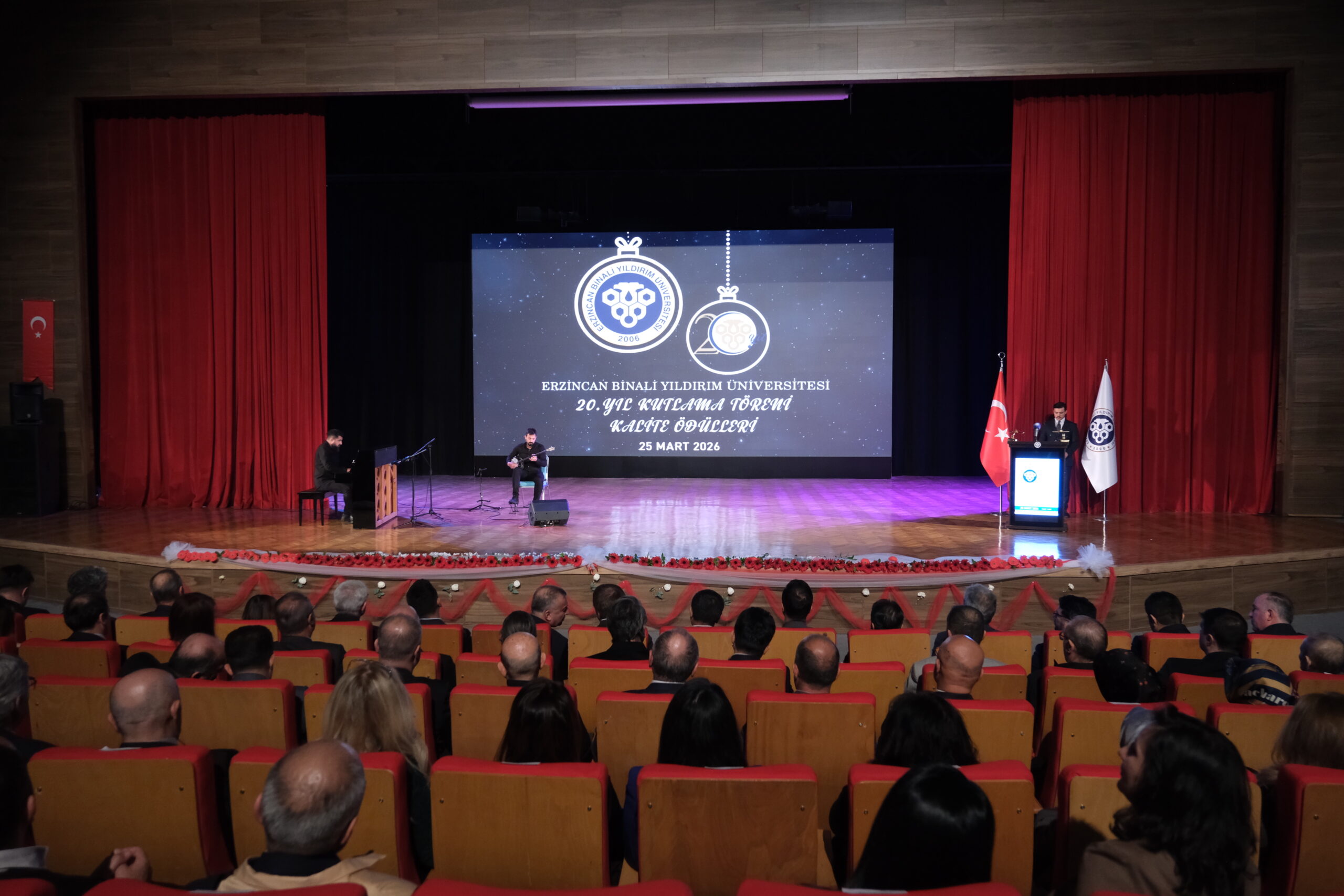 Erzincan Binali Yıldırım Üniversitesi (EBYÜ), kuruluşunun 20. yıl dönümünü geniş katılımlı ve anlam yüklü bir programla kutladı. Üniversitenin akademik gelişimini, kurumsal başarılarını ve gelecek hedeflerini gözler önüne seren “20. Yıl ve Kalite Ödülleri Töreni”, Prof. Dr. Erdoğan Büyükkasap Kongre ve Kültür Merkezi’nde düzenlenen törenle gerçekleştirildi.