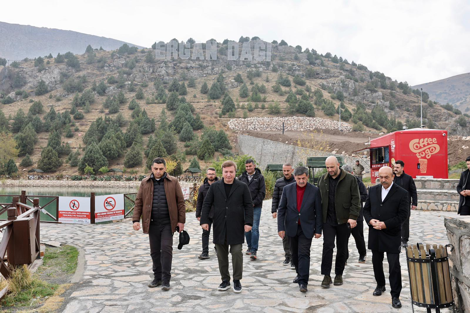 “Kayak pistlerinde, konaklama tesislerinde, çevre düzenlemelerinde ve sosyal donatılarda hummalı çalışmalar devam ediyor. Ergan Dağı Kayak Merkezimizin, kayakseverlerin tüm beklentilerini karşılayacak potansiyele sahip olması ve gerek ülkemizde gerekse de dünyadaki önemli kayak merkezlerinden biri haline gelmesi için çalışıyoruz. Çalışanlarımıza teşekkür ediyor, kolaylıklar diliyorum.”