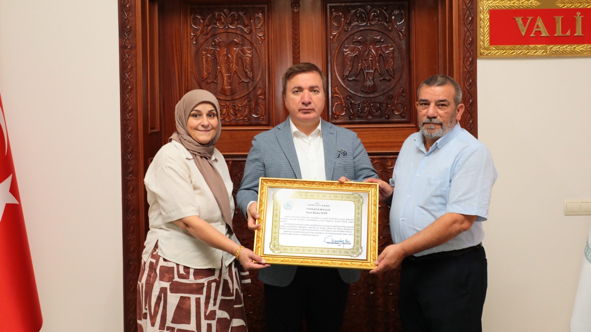 Erzincan Valiliği’nde Erzincan Valisi Hamza Aydoğdu, hayırsever iş insanı Harun Yurt’a Teşekkür Belgesi takdim etti. Programda, engelli vatandaşlara yönelik yapılan bu yardımların toplumsal yaşamda farkındalık oluşturduğu ve birçok insanın hayatına dokunduğu vurgulandı.
