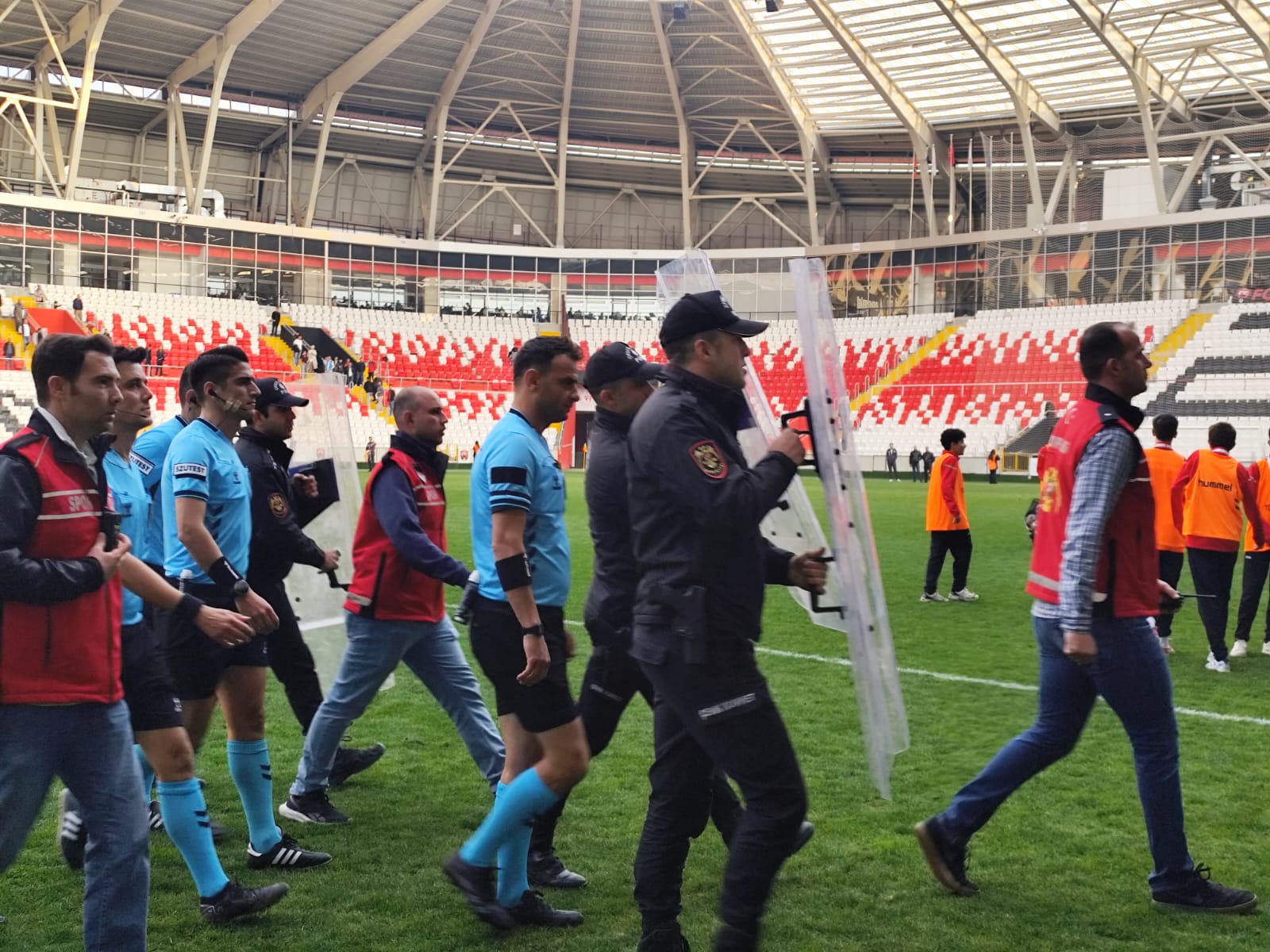 Karşılaşmanın ardından 24 Erzincanspor futbolcuları, teknik heyeti ve taraftarları hakem Cantürk Kılıç’a sert tepki gösterdi.